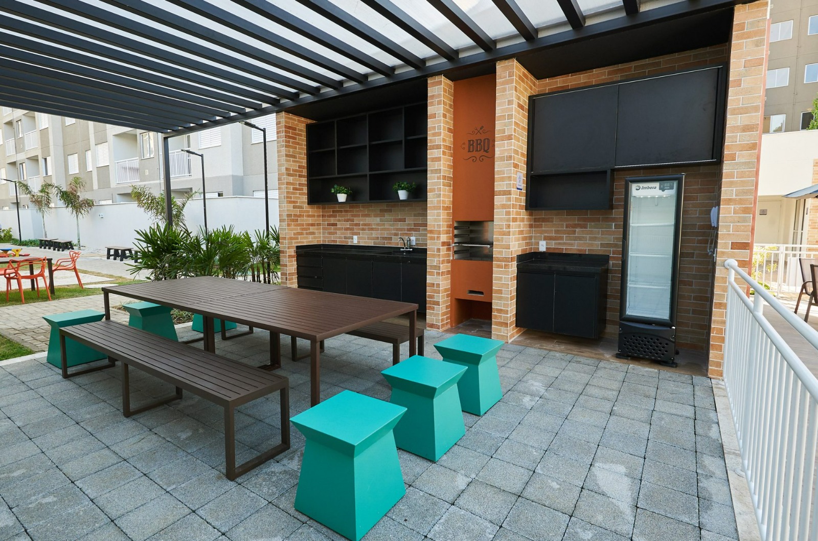 Piscina com deck molhado, quadra esportiva society, redário, playground, bicicletário, salão de festas equipado, espaço gourmet com churrasqueira, horta, pet place e vaga de garagem para visitantes.